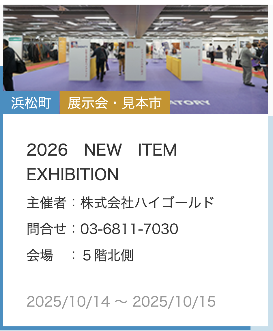 | 2024年10月16日 | 国際アパレル&ノンアパレル生産技術見本市が開催されます。 |
